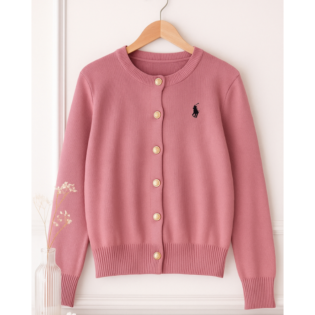 Dailyofprincess Canna Cardigan Rajut Wanita Knit Button Gold Logo Bordir Kuda
