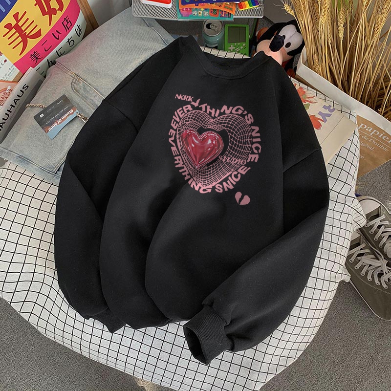 Forteid Sweater Lengan Panjang Oversized Sweater Wanita Premium Korean/Switer Wanita Oversized (Cetak Berbentuk Hati) Ko
