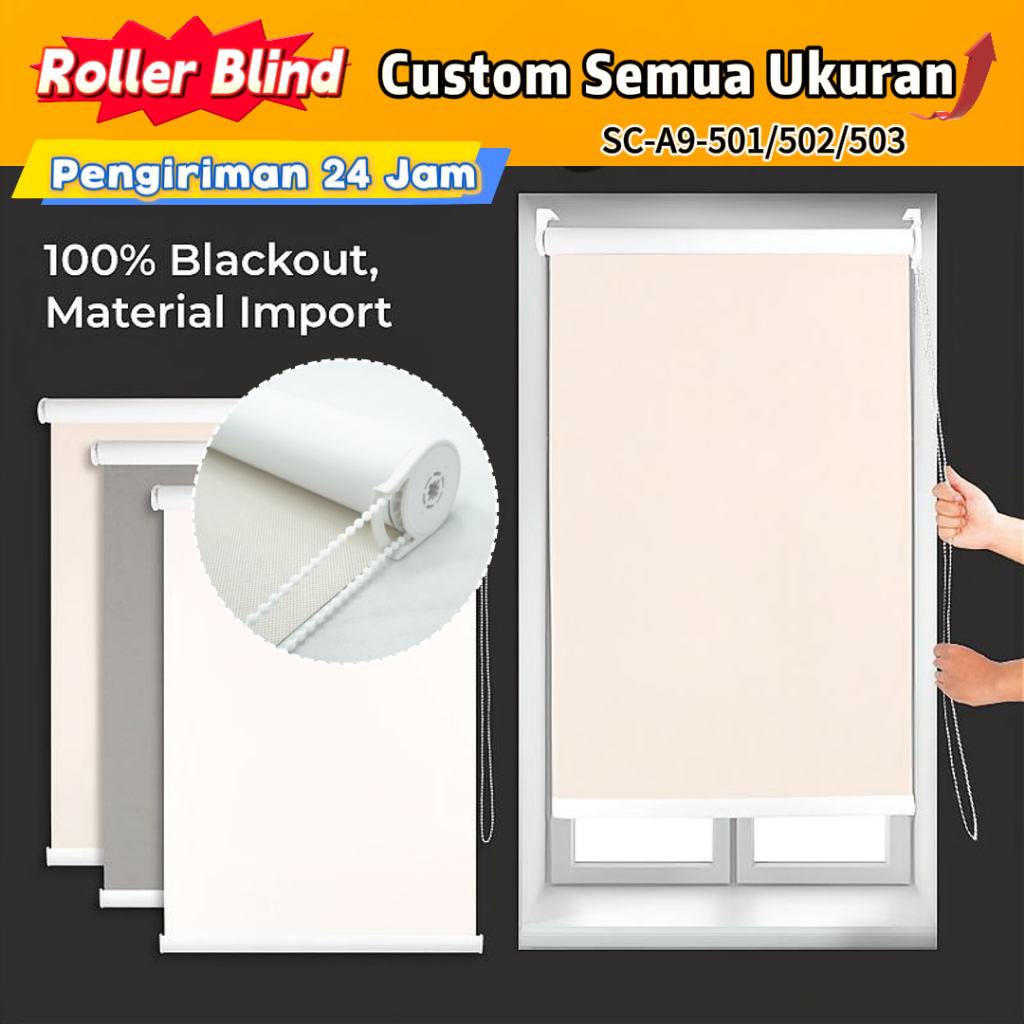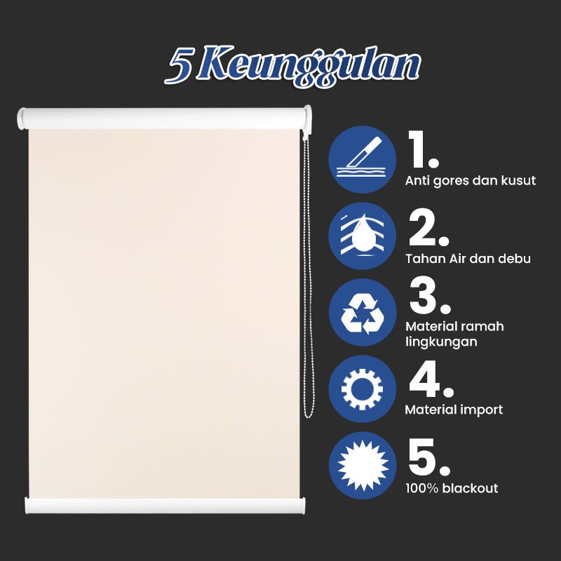 Ready Stock - Roller Blind Tirai Gulung Gorden Rol Blackout Total 100 PERSEN - Lengkap dengan Aksesoris, Anti Jamur, Priv