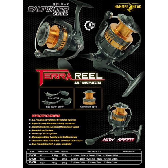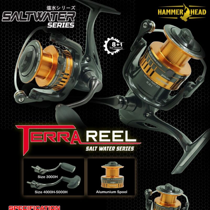 Reel HAMMERHEAD TERRA SW 3000H 4000H 5000H 8+1BB Water Resistant - Power Handle