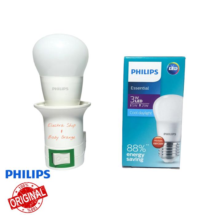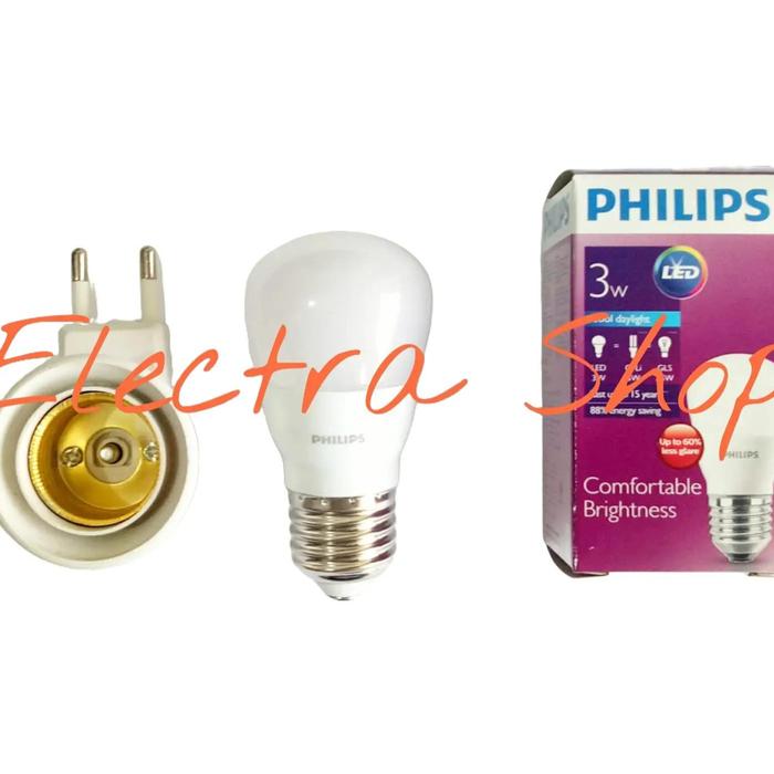 Lampu Tidur Philips Led Warna Putih Plus Fitting Colok Cool Daylight 250 Lumen Hemat Energi 85 PERSEN Dengan Fitting Colok Sni