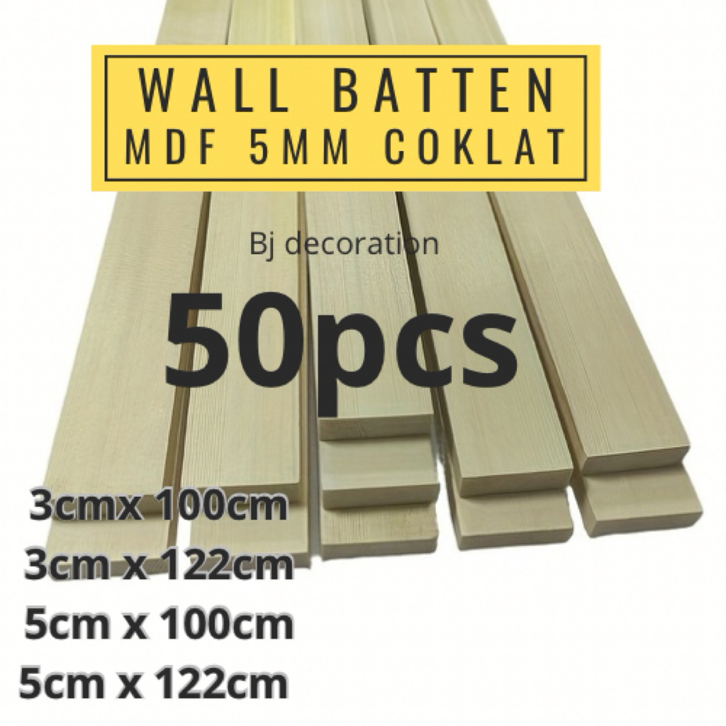 Paket 50Pcs Wall Batten Mdf 5Mm Coklat Super Tebal