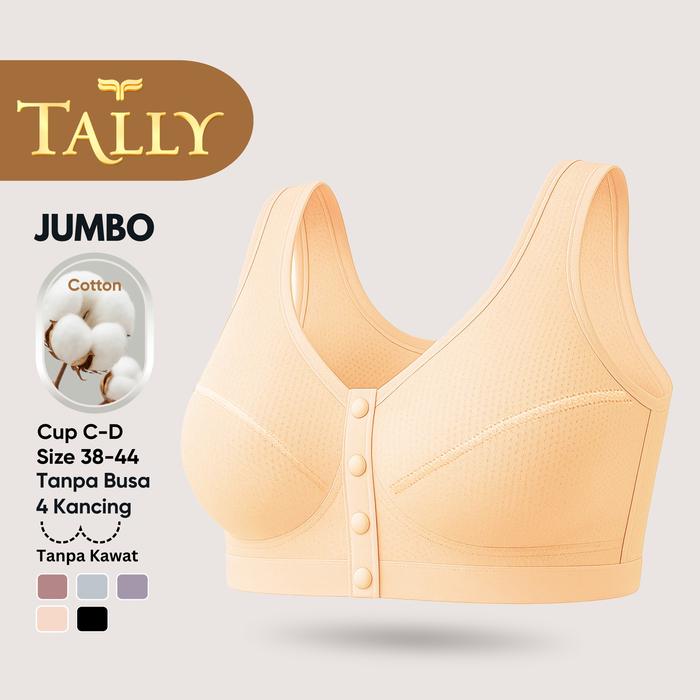 Tally Bra Tanpa Kawat Tanpa Busa Bahan Katun Pori Cup C - D Kancing 4 Bra Jumbo Kancing Depan Bh 2091/6105 Sarwendah - D