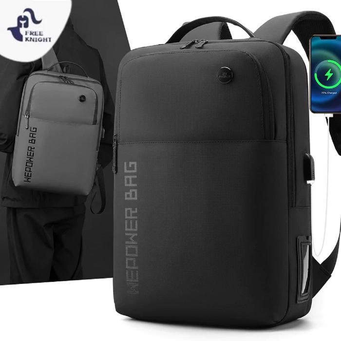 Freeknight Tas Ransel Pria Usb Charge Tas Laptop Sekolah Pria Wanita Trendy Anti Air Backpack Tr735 - Hitam