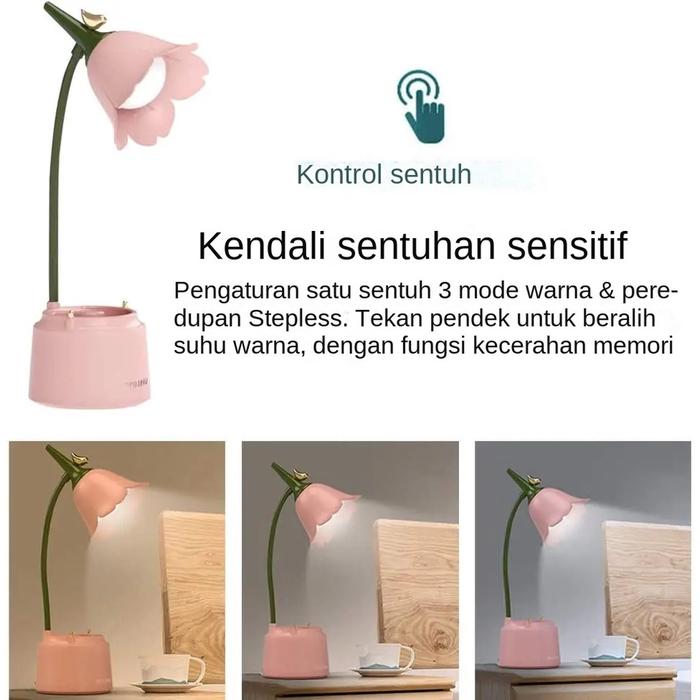 Pink Flower Desk Lamp Girl'S Gift Lampu Meja Led Bunga Lampu Cahaya Malam Kamar Tidur Siswa Pencahayaan Kamar Tidur Sisw