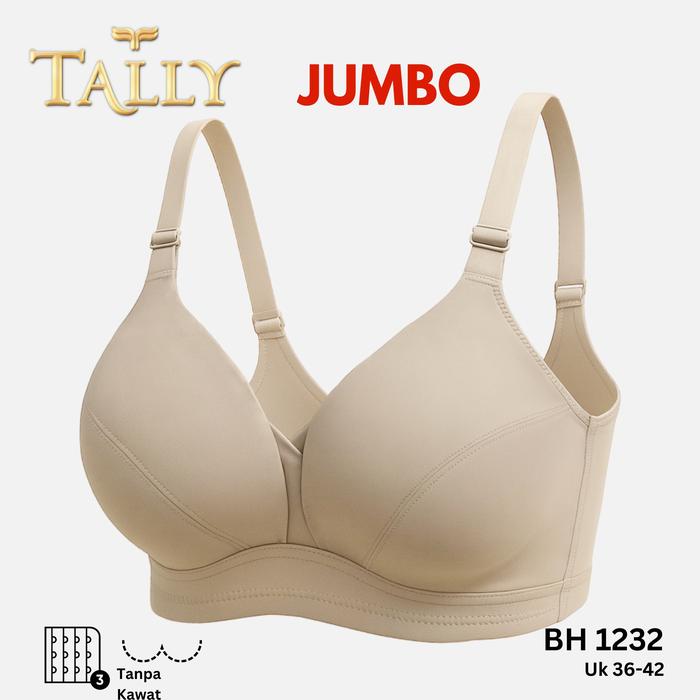 Tally Bra Tanpa Kawat Busa Tipis Bahan Katun Cup D Kait 3 Daily Bra Jumb0 Bh 1232 Sarwendah - Coklat Tua, 36