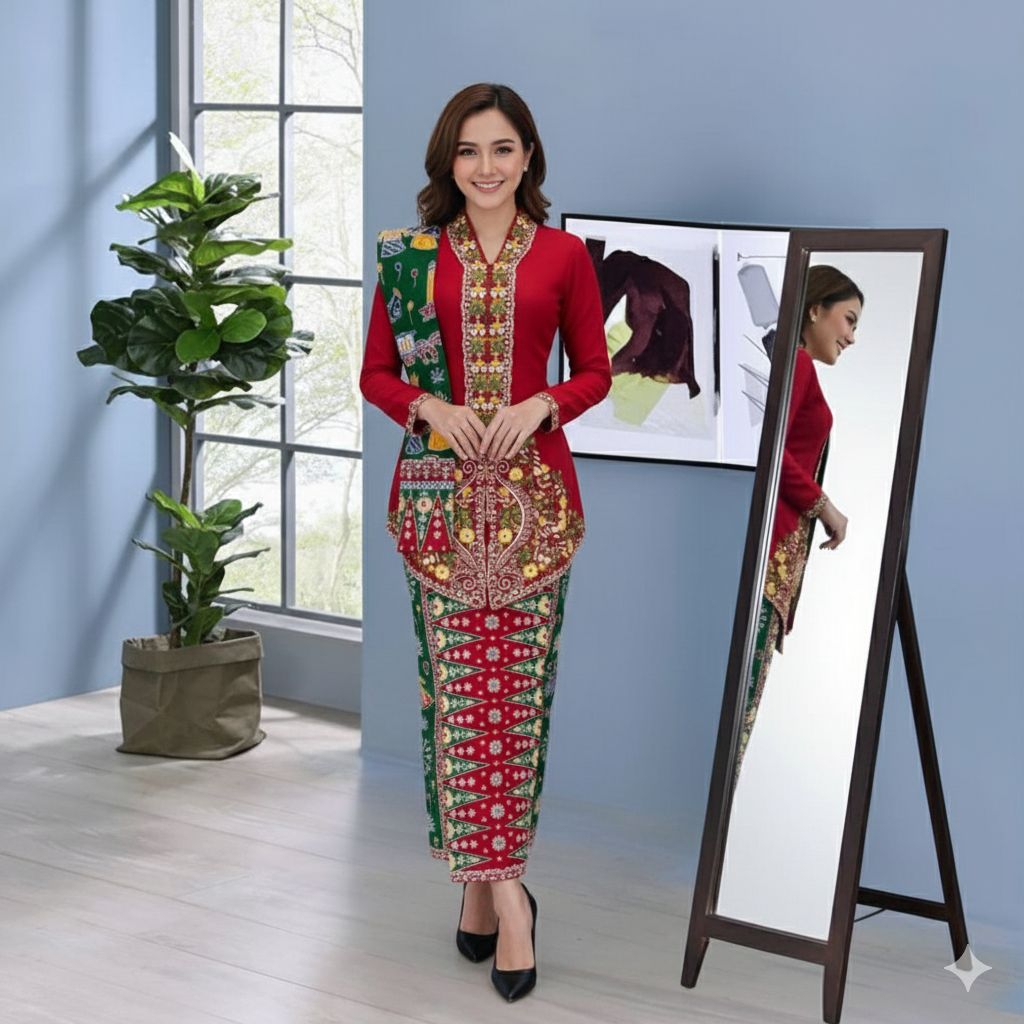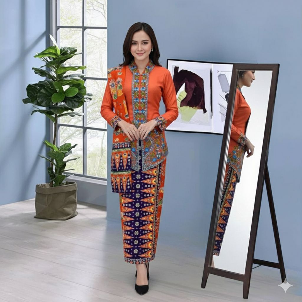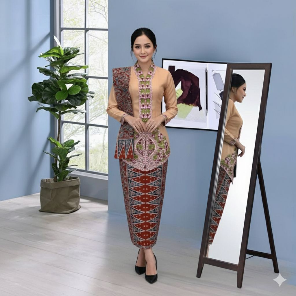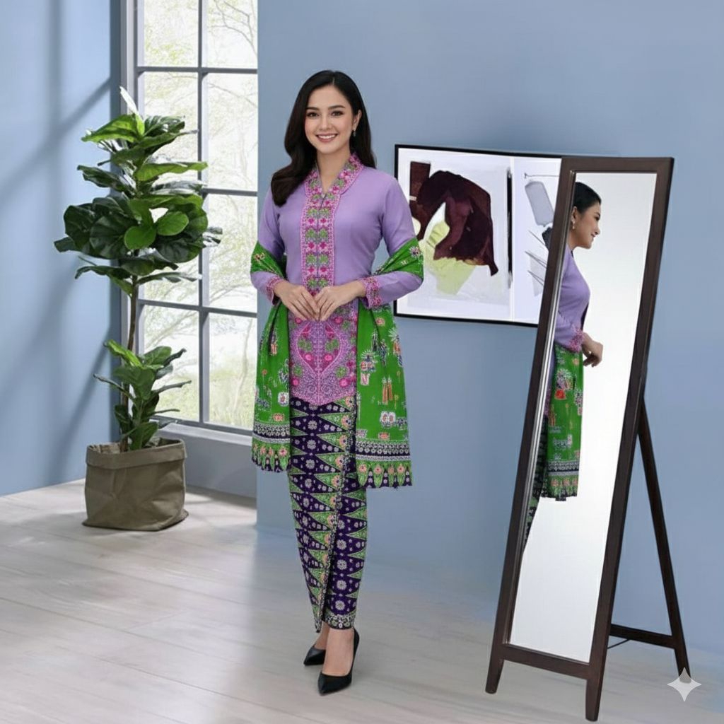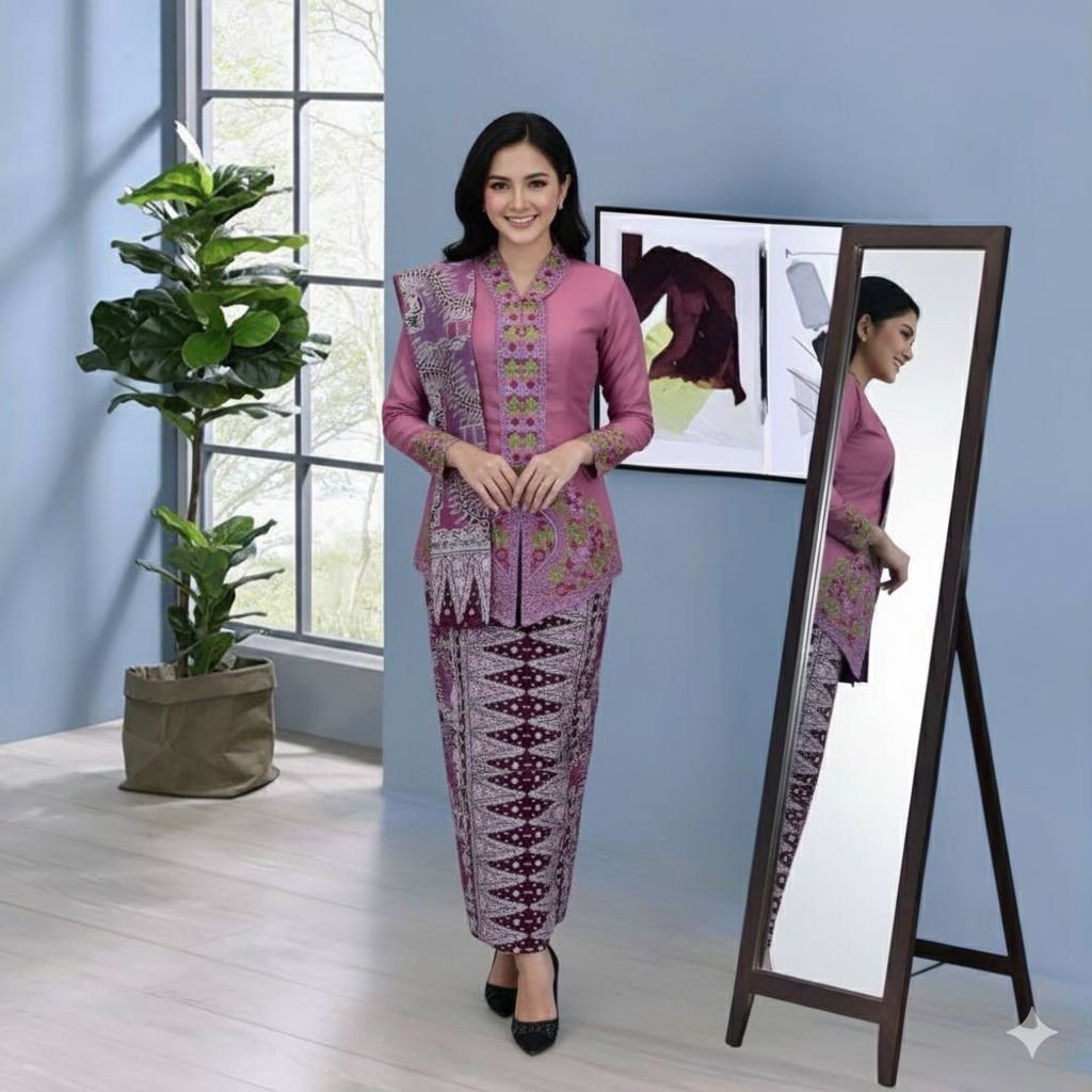 Toko.Sky Setelan Kebaya Encim Bordir/Setelan Kebaya Katun/Setelan Kebaya Encim Selendang Cukin