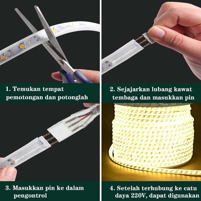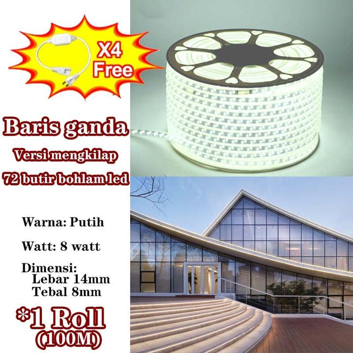 Lampu Led Strip Selang 5050 (100M Full+Soket 4Pcs) /Paket Lampu Led - Putih