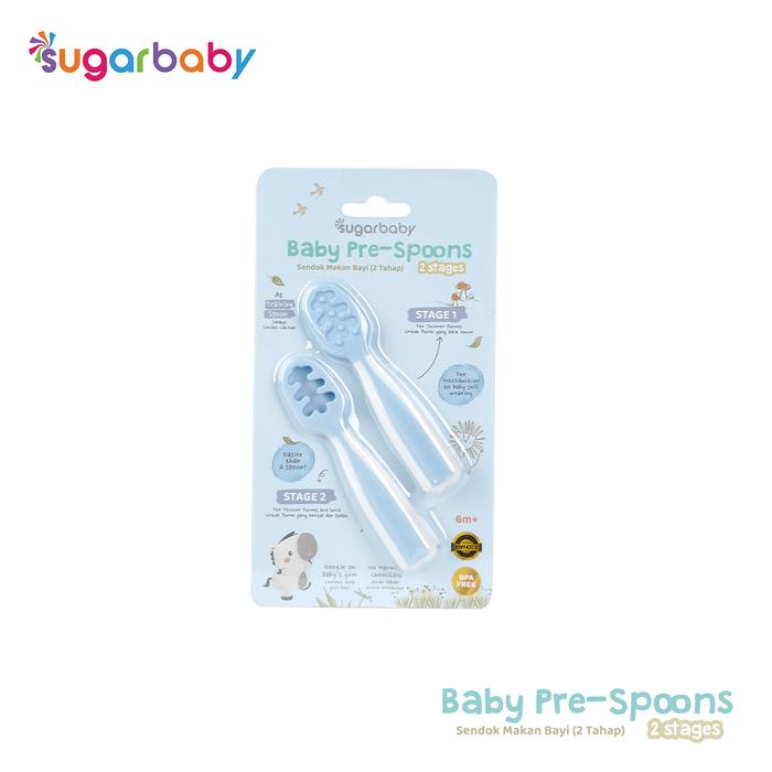 Sugar Baby Pre Spoon 2 Stages Sendok Belajar Bayi Bpa Free / Training Spoon / Peralatan Makan Mpasi Bayi - Blue