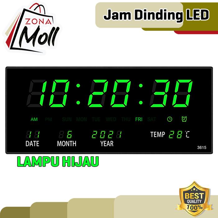 Jam Dinding Digital Led Meja Clock Jam Tempel Dinding 3615 Fitur Kalender Alarm Alaram - Merah