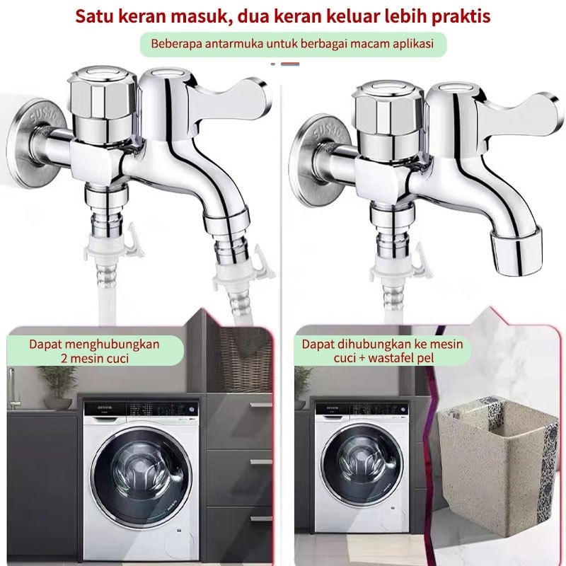 SUS304 KRAN CABANG KERAN AIR KRAN KERAN AIR SHOWER CABANG 2 DOUBLE KAMAR MANDI MESIN CUCI KUNINGAN BESI