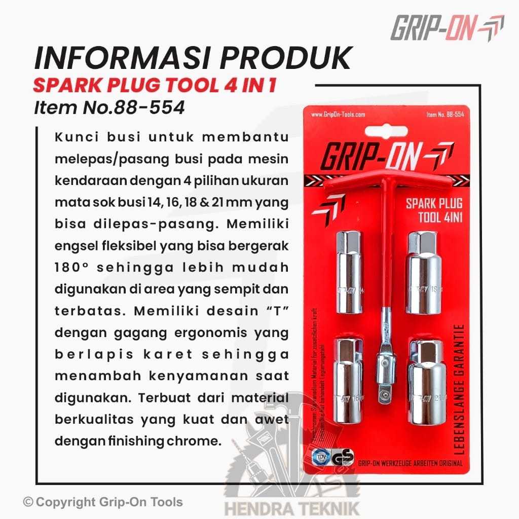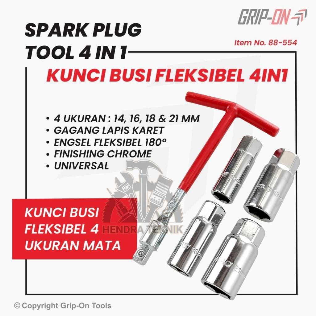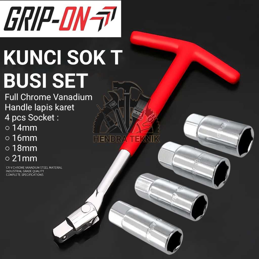 ORIGINAL GRIP ON KUNCI BUSI SET 4 PCS CRV 14MM / 16MM / 18MM / 21MM SPARK PLUG 14 16 18 21 KUNCI SOK T FLEXIBLE CHROME V