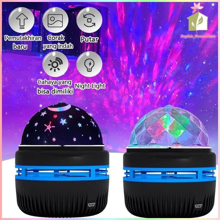 Lampu Tidur Proyektor Aesthetic 360 Rotasi Kristal Mode Led Bulan Bintang - Langit Bintang