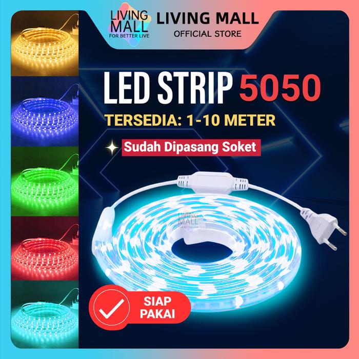 [Siap Pakai]Paket Lampu Strip Led 5050 Smd 1-10Meter / Lengkap Tinggal Colok/ Lampu Strip Langsung Pakai - Putih, 1Meter