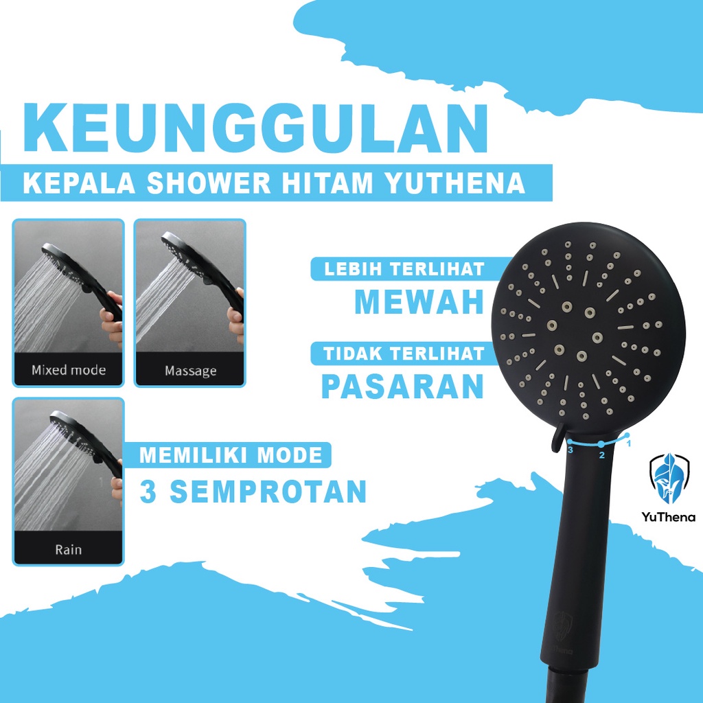 SHOWER KAMAR MANDI HITAM DAN KRAN CABANG BLACK EDITION BUNDLING YUTHENA