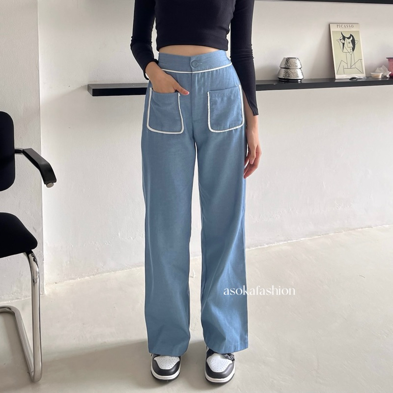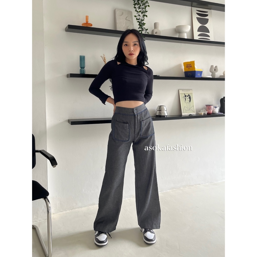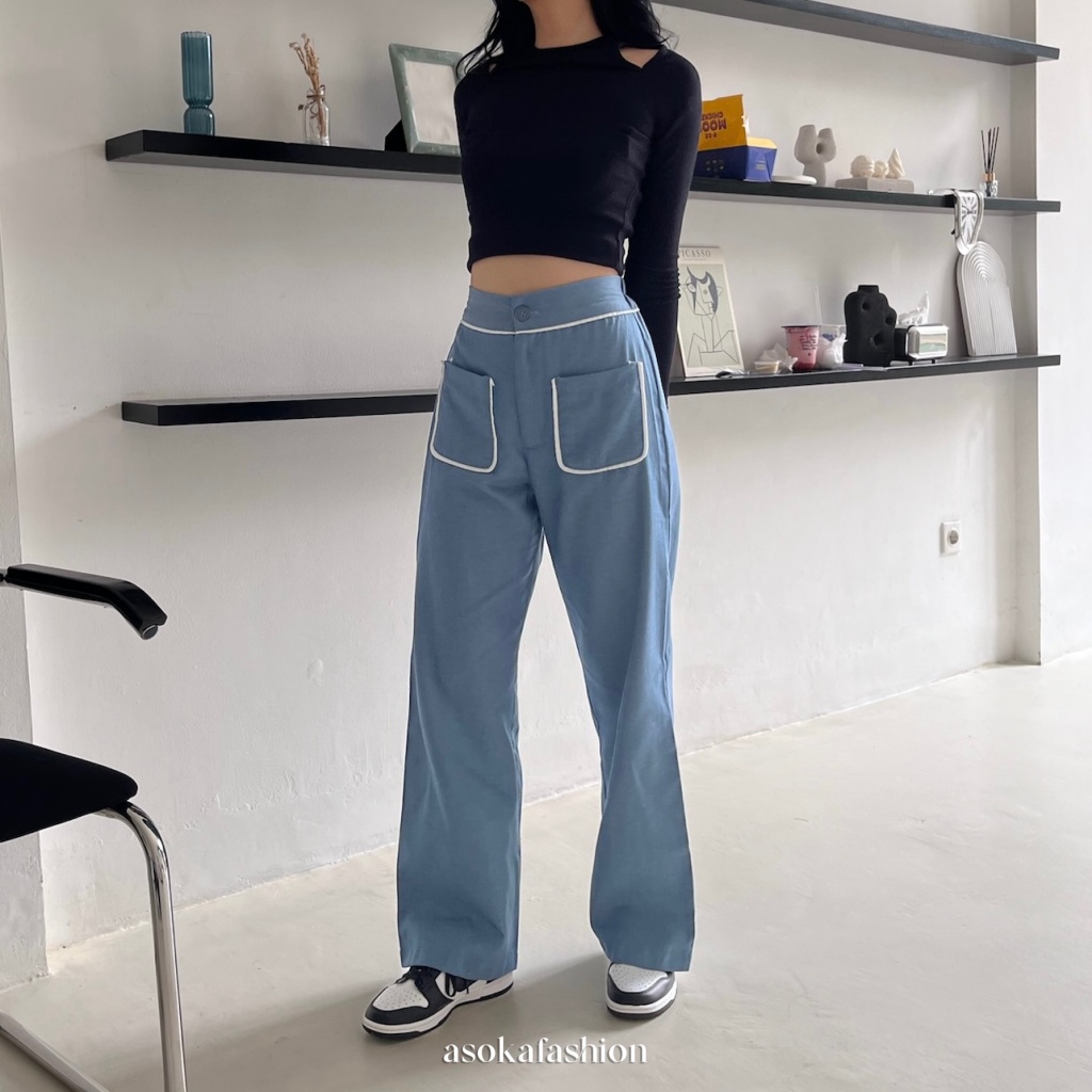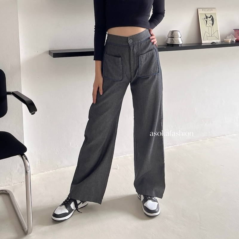 Asoka Yuri Pants 3112 - Celana Kulot Wanita - Trouser High Waist - Loose Pants Front Pocket