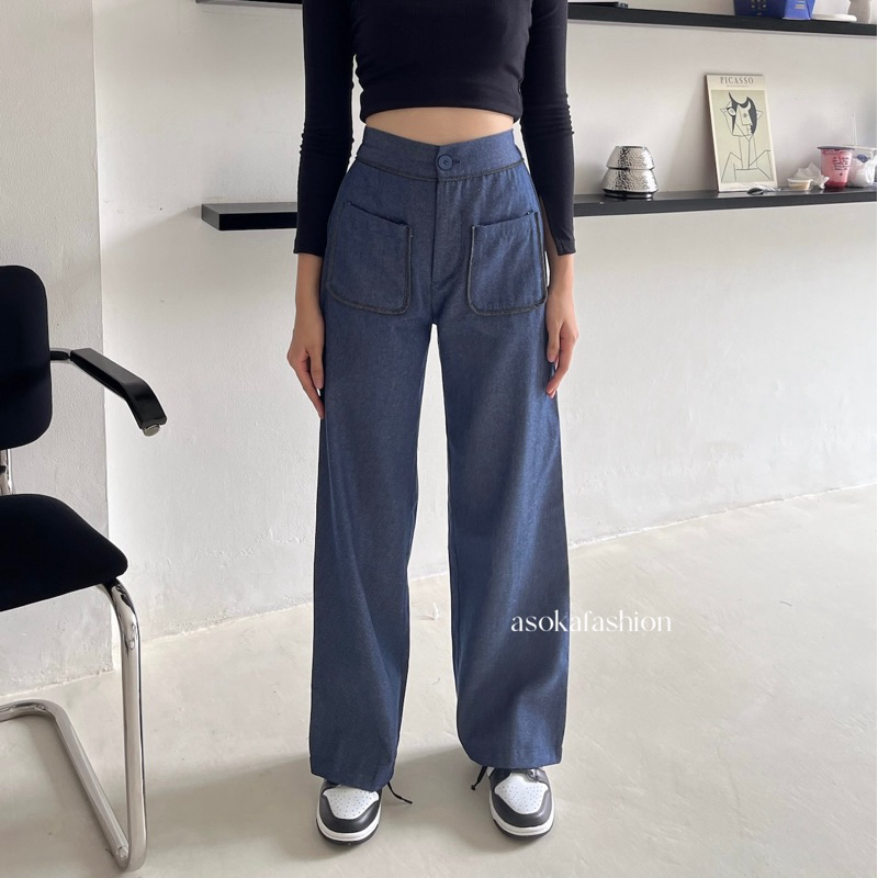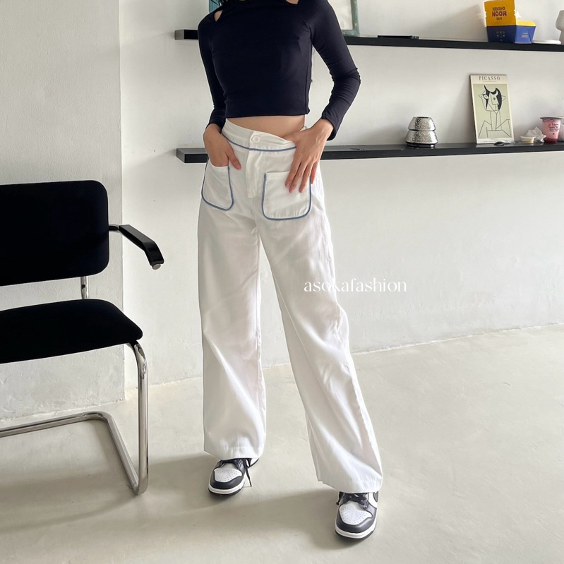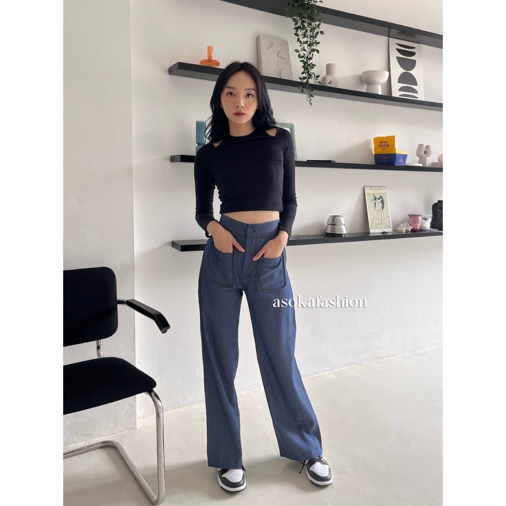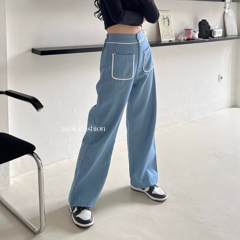 Asoka Yuri Pants 3112 - Celana Kulot Wanita - Trouser High Waist - Loose Pants Front Pocket