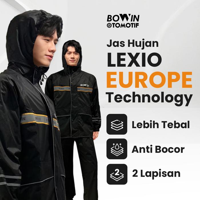 Bowin Jas Hujan Lexio Europe Technology - Original Garansi Anti Bocor Anti Rembes & Bahan Tebal - Lexio Hitam, Size 3Xl