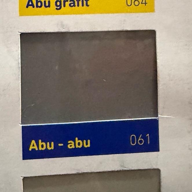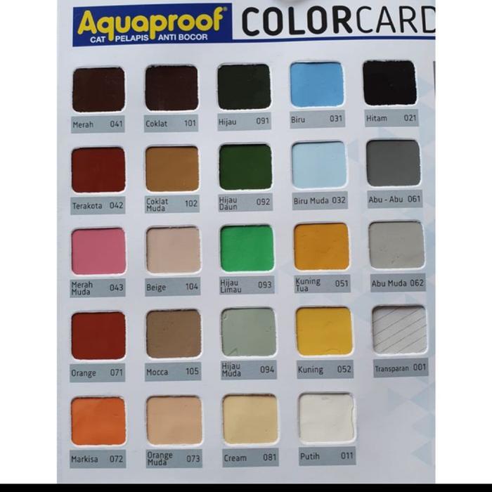 Abu abu 061, Abu muda 062, Putih 011, Transparan 001, Cream 081, Biru 031, Hijau limau 093, Abu grafit 064, Terakota 042, Merah 041