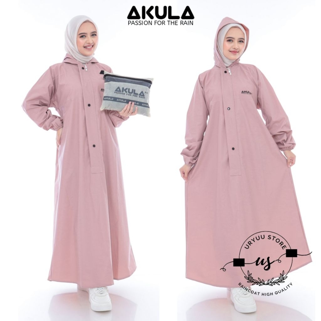 AKULA Jas Hujan Gamis Wanita Muslimah Terbaik Bahan PVC Tebal Anti Rembes