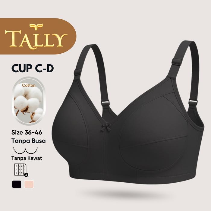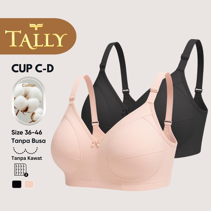 Tally Paket 2 Pcs Bra Tanpa Kawat Tanpa Busa Kait 3 Cup C - D Bra Harian Polos Bh 055 Sarwendah - 2 Pcs (Random), 36