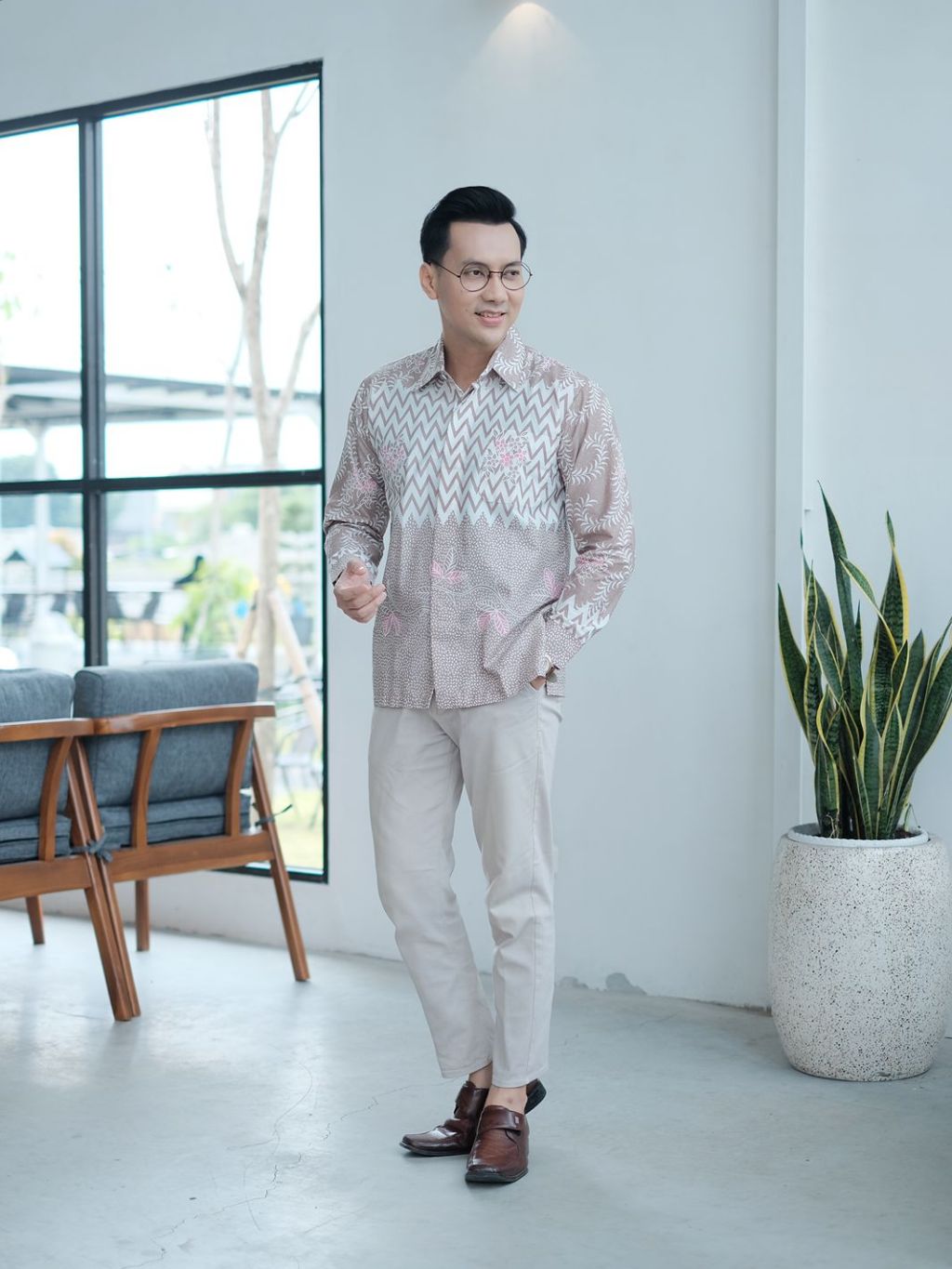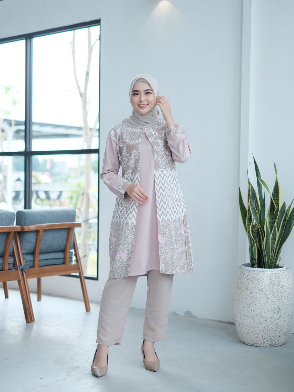 Brawee Batik Tunik Couple Modern Set Pakaian Couple Kemeja Batik Pria Modern M L Xl Xxl Jumbo