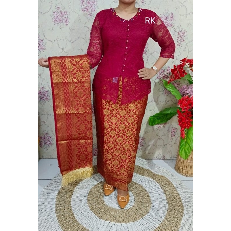 Set Kebaya Simple Dan Songket Selendang Ukuran L-XXL
