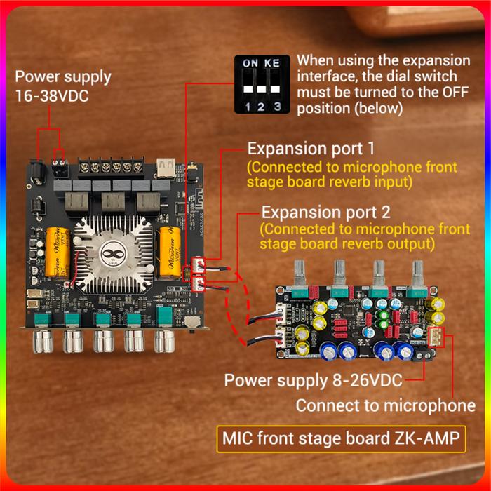 Tpa3255 Amplifier Class D 2.1 Ch Bluetooth 5.1 Stereo + Subwoofer 2X 220W + 350W Original Zk-As21 2G
