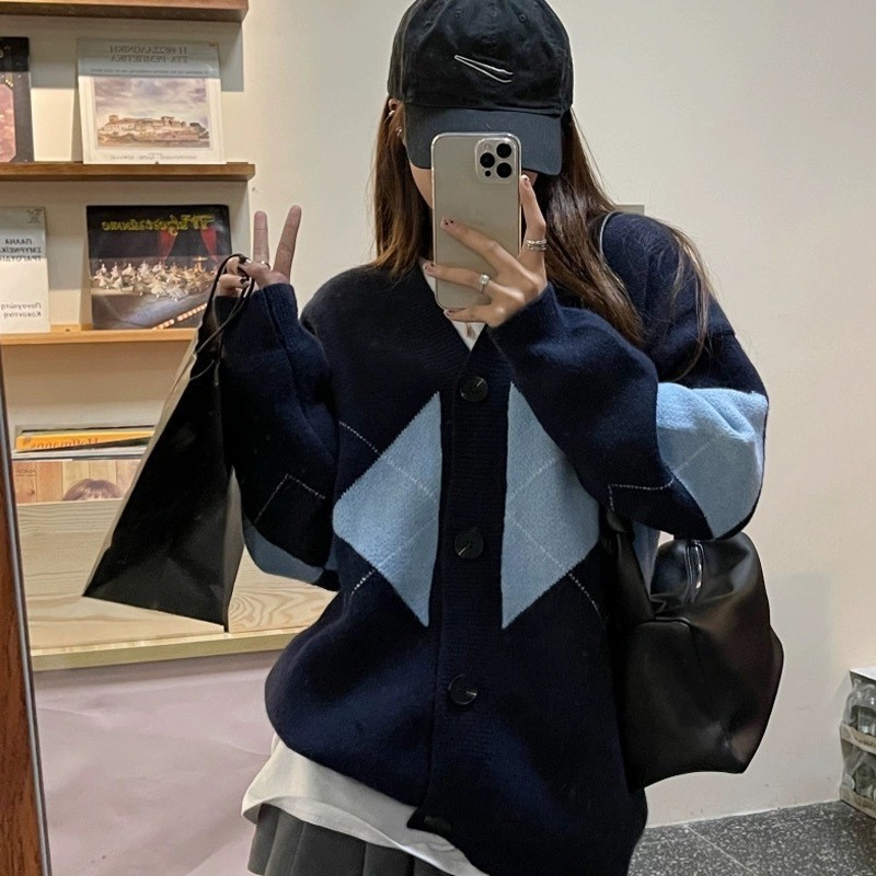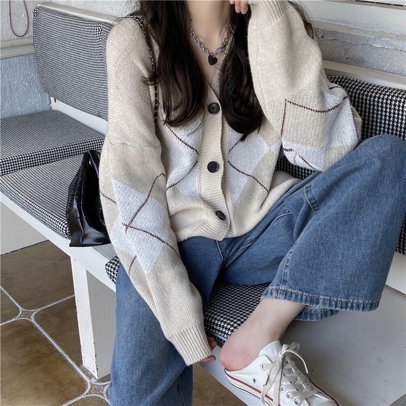 Lo Clothes Cardigan Rajut Import Cardigan Korean Style Outer Wanita Soft Knit Motif Plaid Rajut Oversize