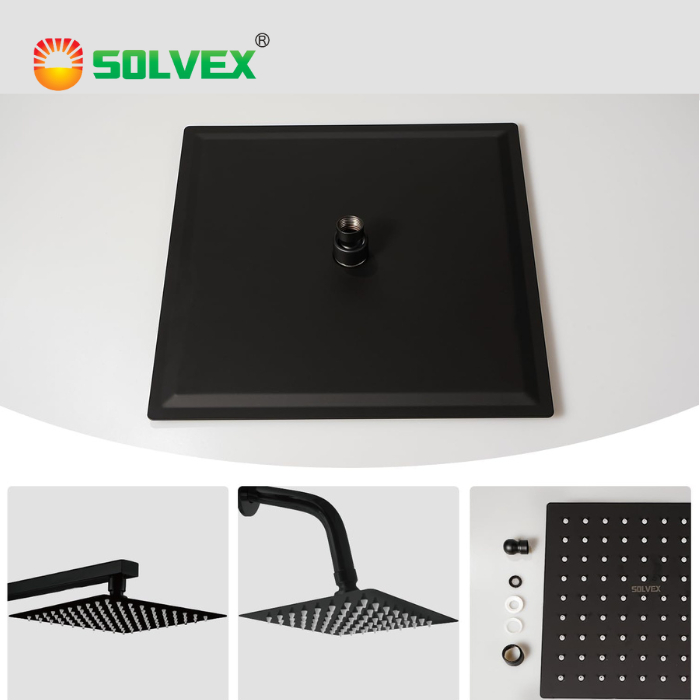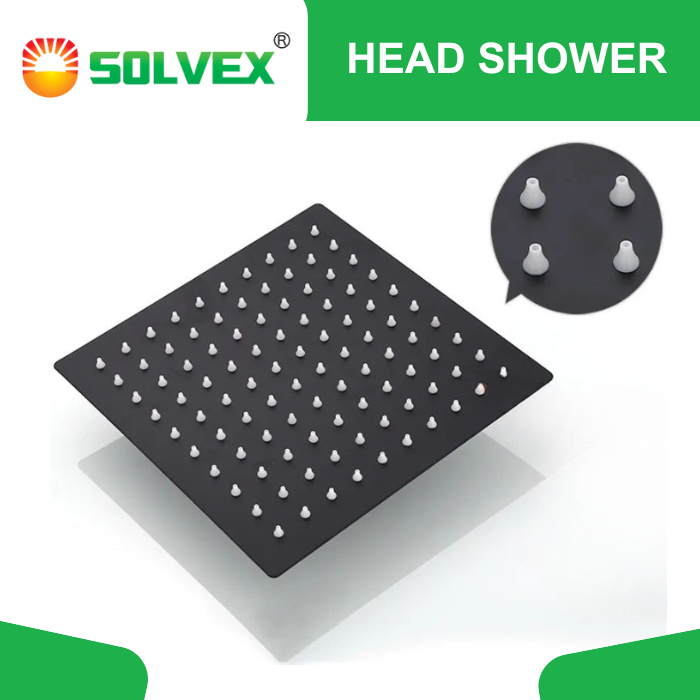 SOLVEX KEPALA SHOWER STAINLESS HITAM HEAD WALL SHOWER KOTAK 8-12 INCH