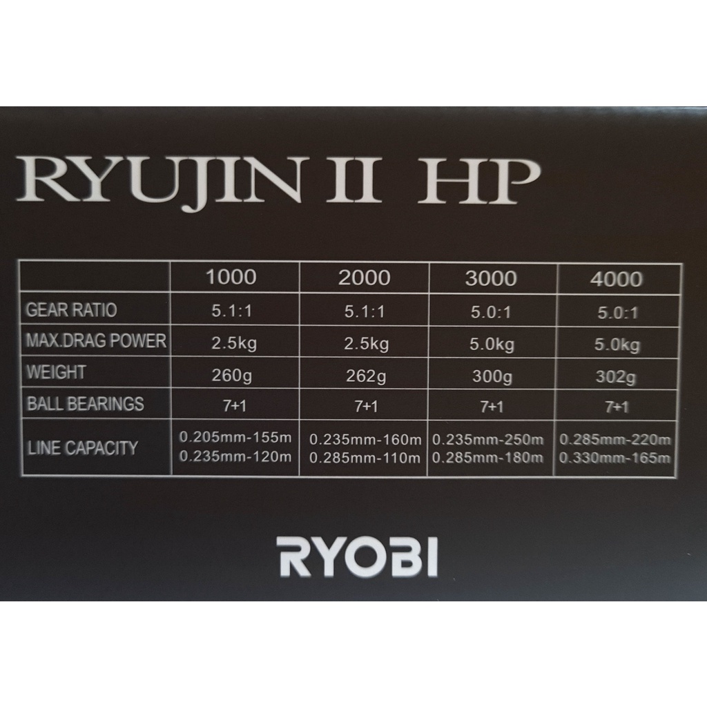 Reel Ryobi Ryujin II 1000-6000 Ukuran Lengkap
