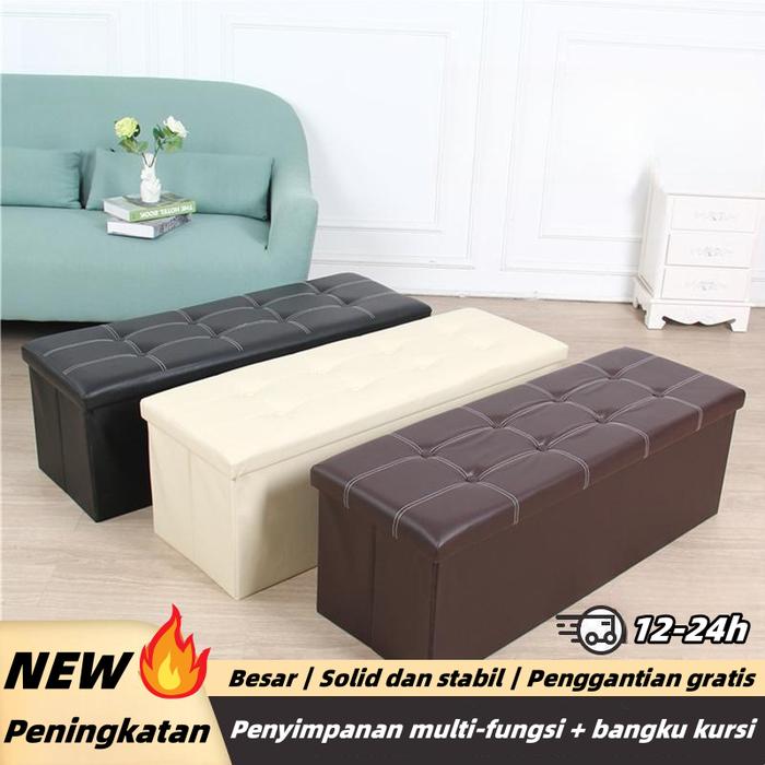 Multifungsi Sofa Container Bangku Storage Box Kursi Box Penyimpanan Dapat Dilipat Kursi Organizer Box - Hitam - 110L