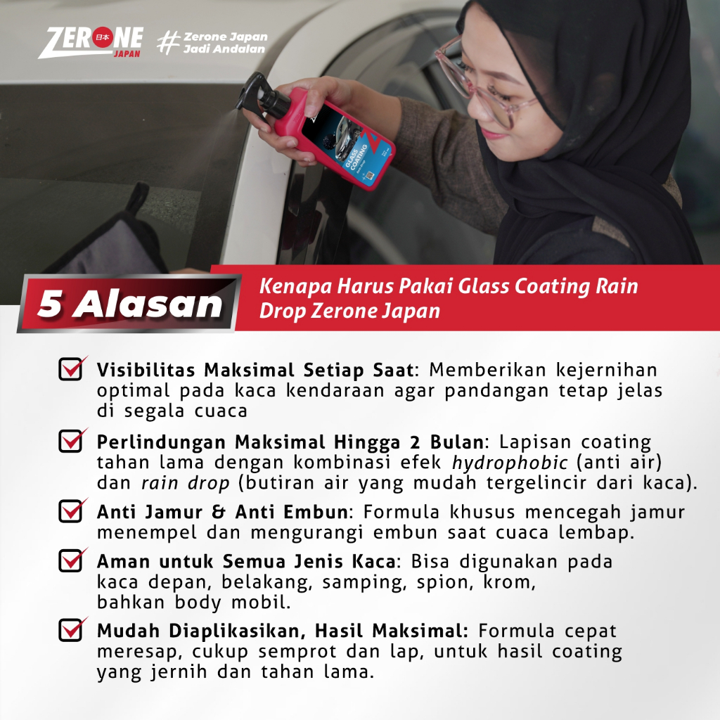 Zerone Japan Glass Coating Pelindung Kaca Mobil Hydrophobic Effect Anti Air Anti Jamur Tahan 2 Bulan