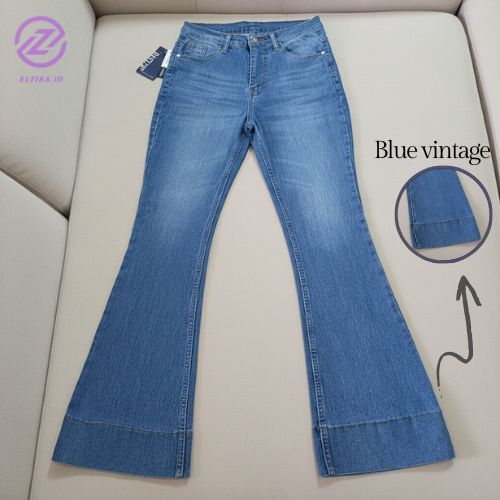 Jennie-Highwaist Cutbray Jeans Celana Flare Panjang Stretch Wanita Retro Vintage Lipat Bawah