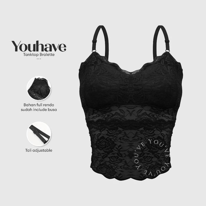 You’Ve ( Youhave ) Tanktop Bralette Bra Busa Renda Lace Brukat Tank Top Singlet Bh Wanita Tang Top Perempuan 100157 - Bl