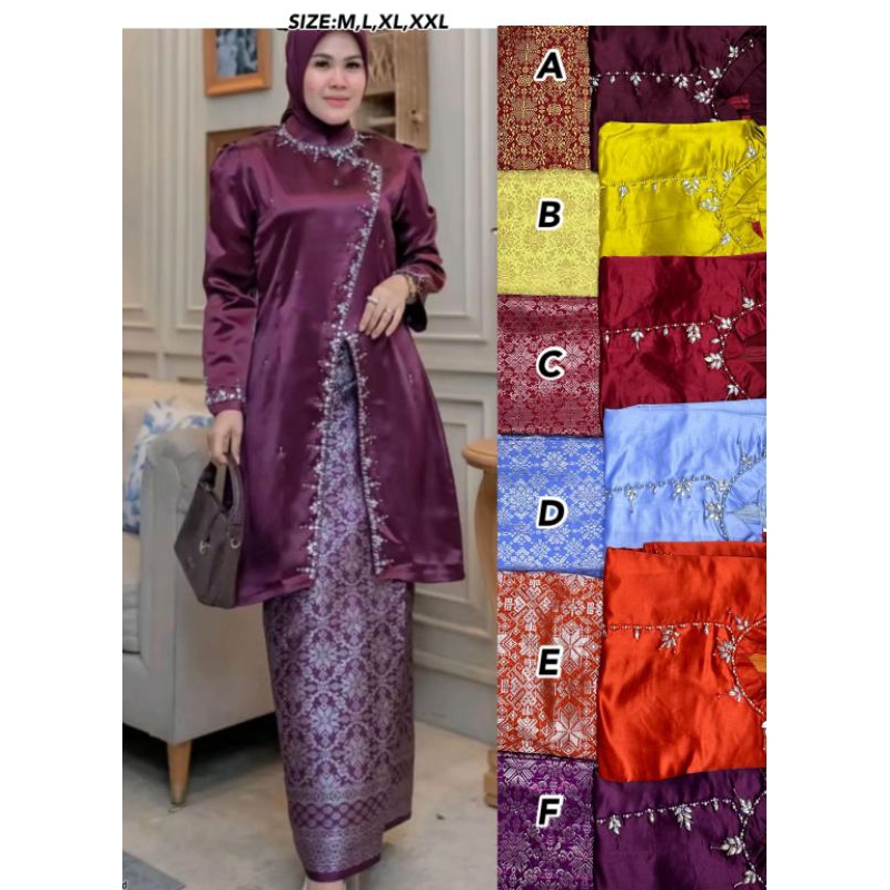 SETELAN SET ROK SONGKET KEBAYA DEWASA BAHAN SATIN CRYSTAL PREMIUM
