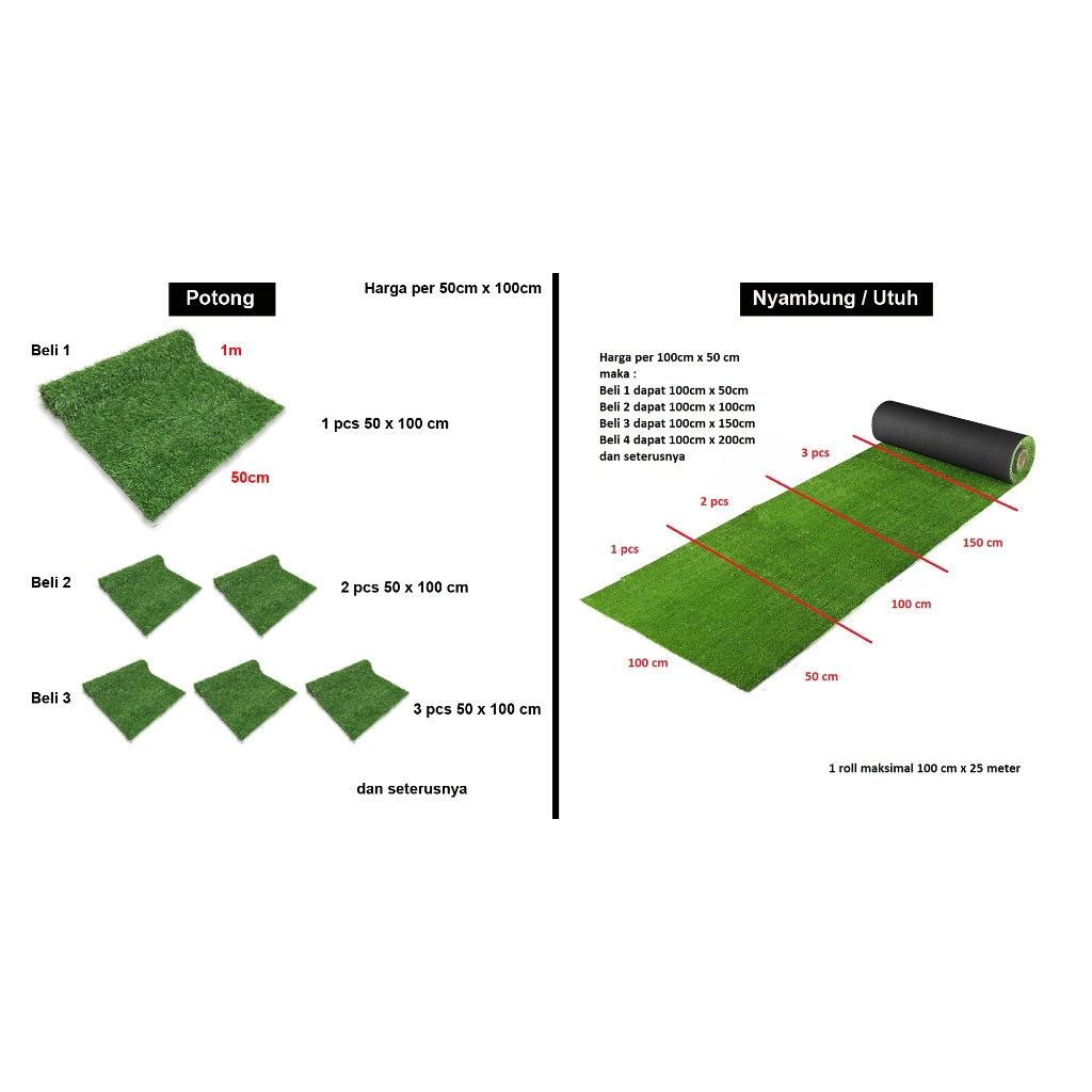 DIY Karpet Rumput Sintetis Full Green Ukuran 50 cm x 100 cm Rumput Palsu Meteran Indoor dan Outdoor Anti Rontok Dek