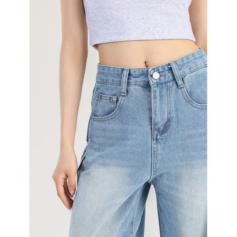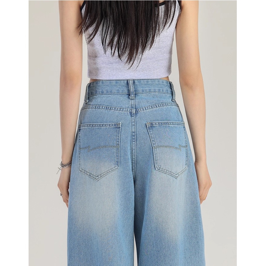 Jumbo S-5Xl Jeans Ukuran Besar Jeans Biru Wanita Jeans Longgar Kaki Lebar Jeans Pinggang Tinggi Premium