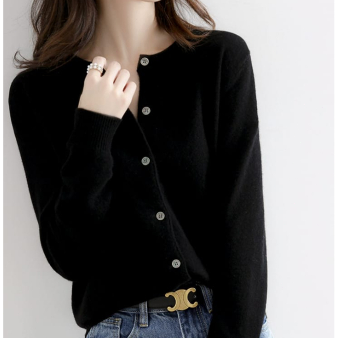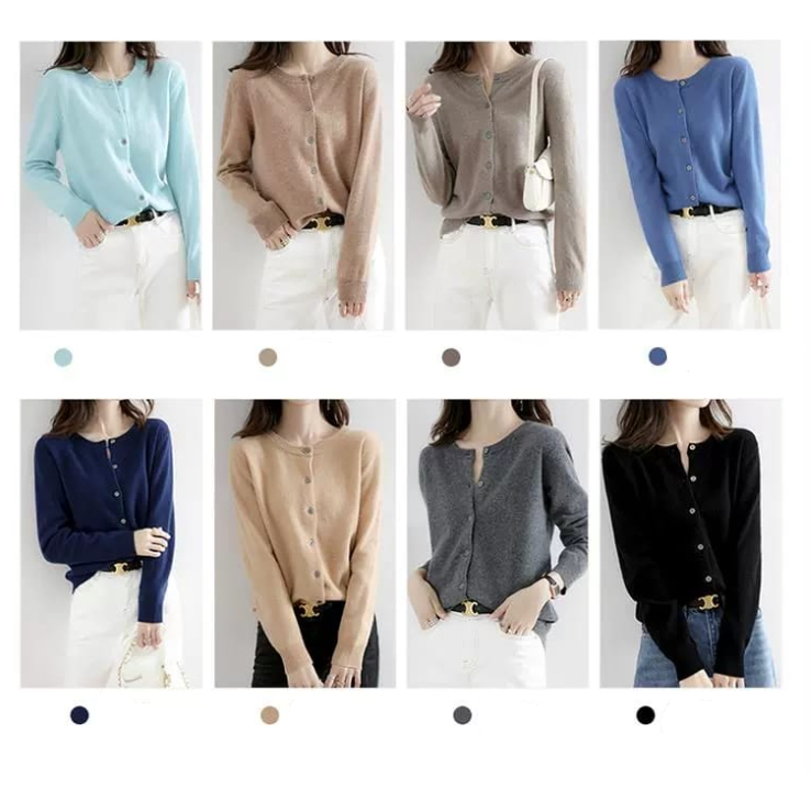 Basic Cardigan Wanita Berkancing Round Neck