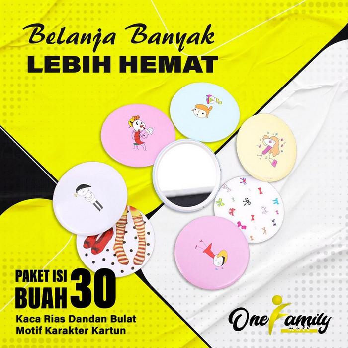 Ofm Paket Isi 30Buah K53 Cermin Kaca Rias Dandan Bulat Motif Karakter Kartun - Acak