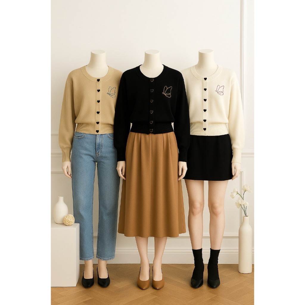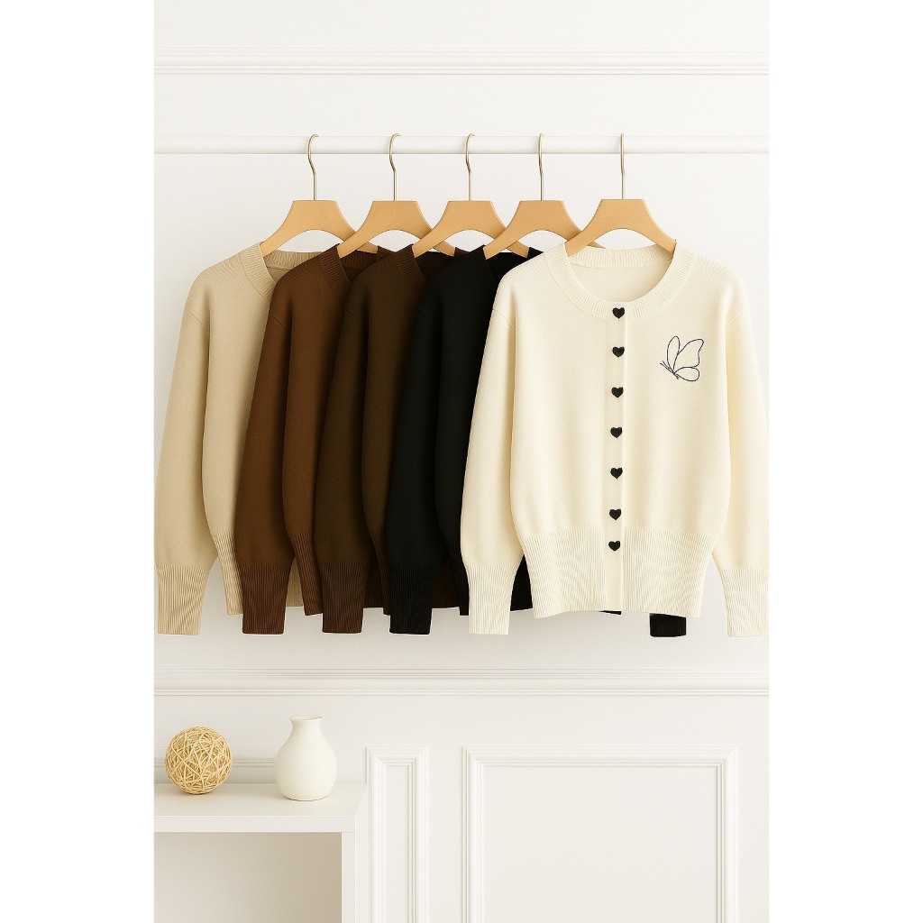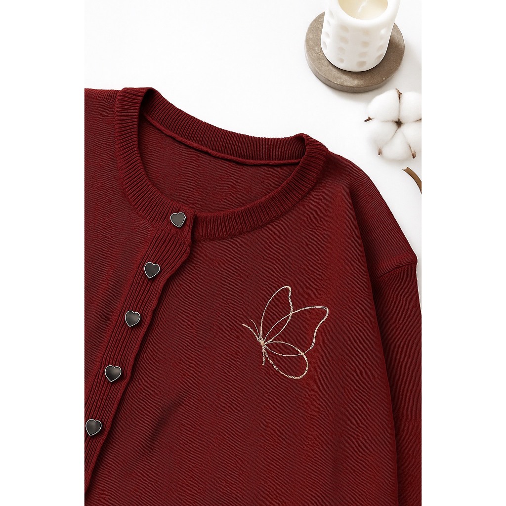 Dailyofprincess Kira Butterfly Cardigan Rajut Wanita Love Button Gaya Casual