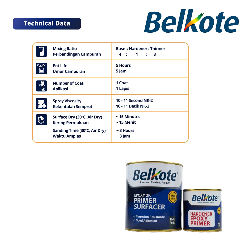 Belkote Epoxy 2K Primer Surfacer - Jade Green Cat Dasar Epoxy / Cat Besi Anti Karat / Cat Mobil 1Liter