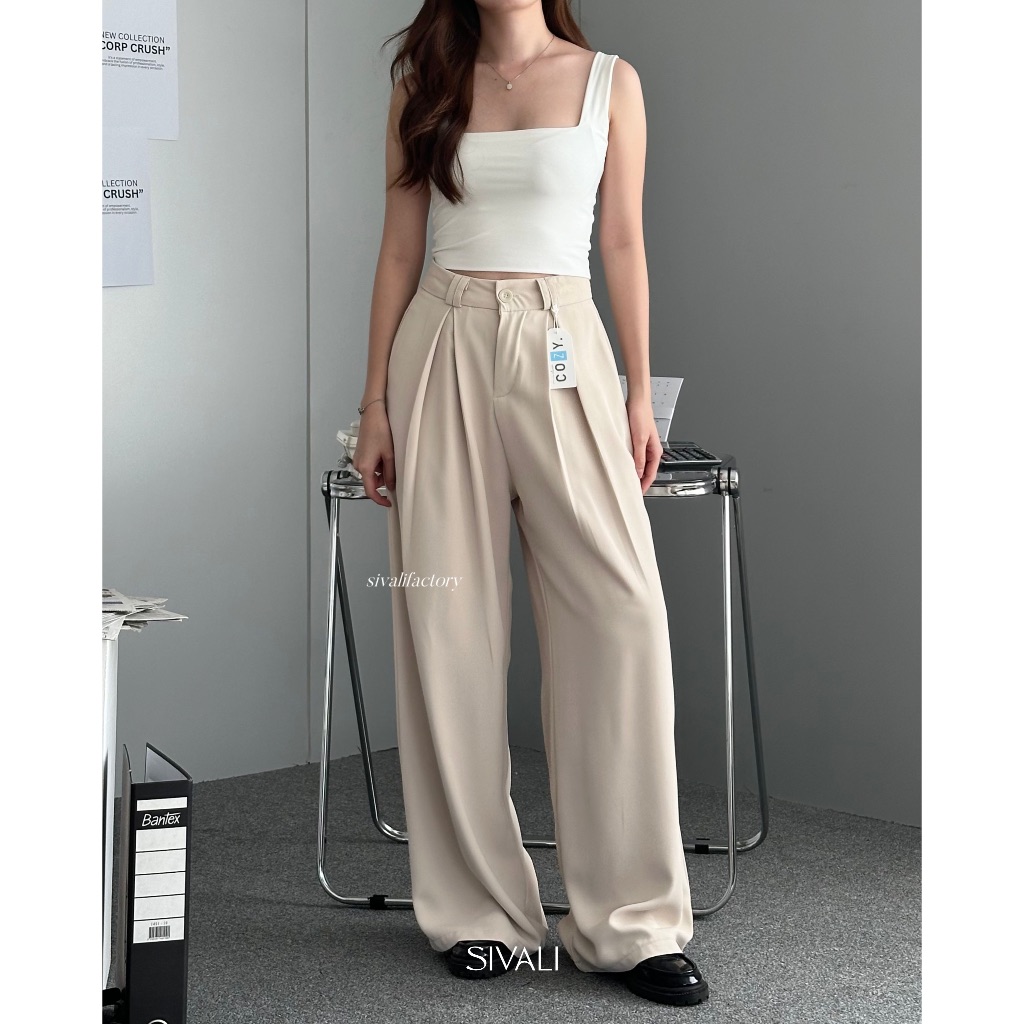 Sivali Loui Loose Pants - Highwaist Cullote Polyester - Celana Kulot Panjang Wanita Anti Kusut - Celana Kantor Formal C