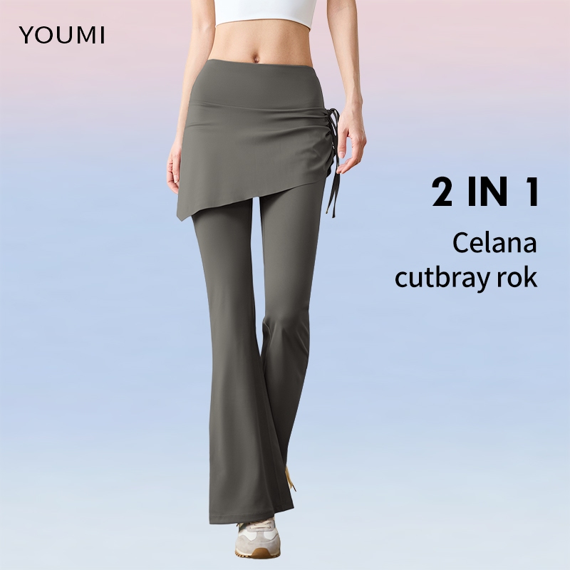 Legging Rok Cutbray Olahraga Wanita High Waist Dengan Tali Serut Samping Jogging Running Zumba Pilates Fitness Gym Sport