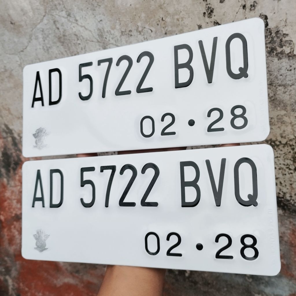 Plat Nomer Custom Putih Baut Tanam Sepasang Bahan Tebal Awet