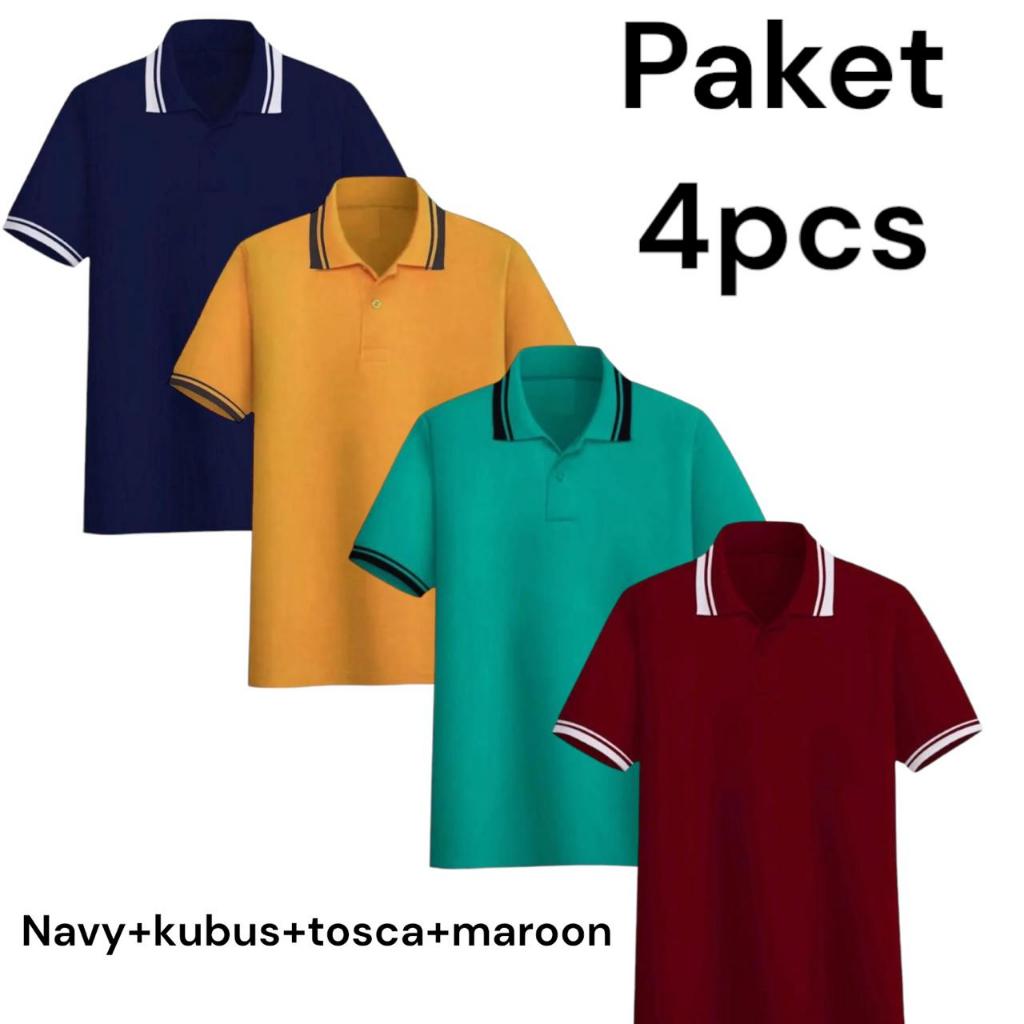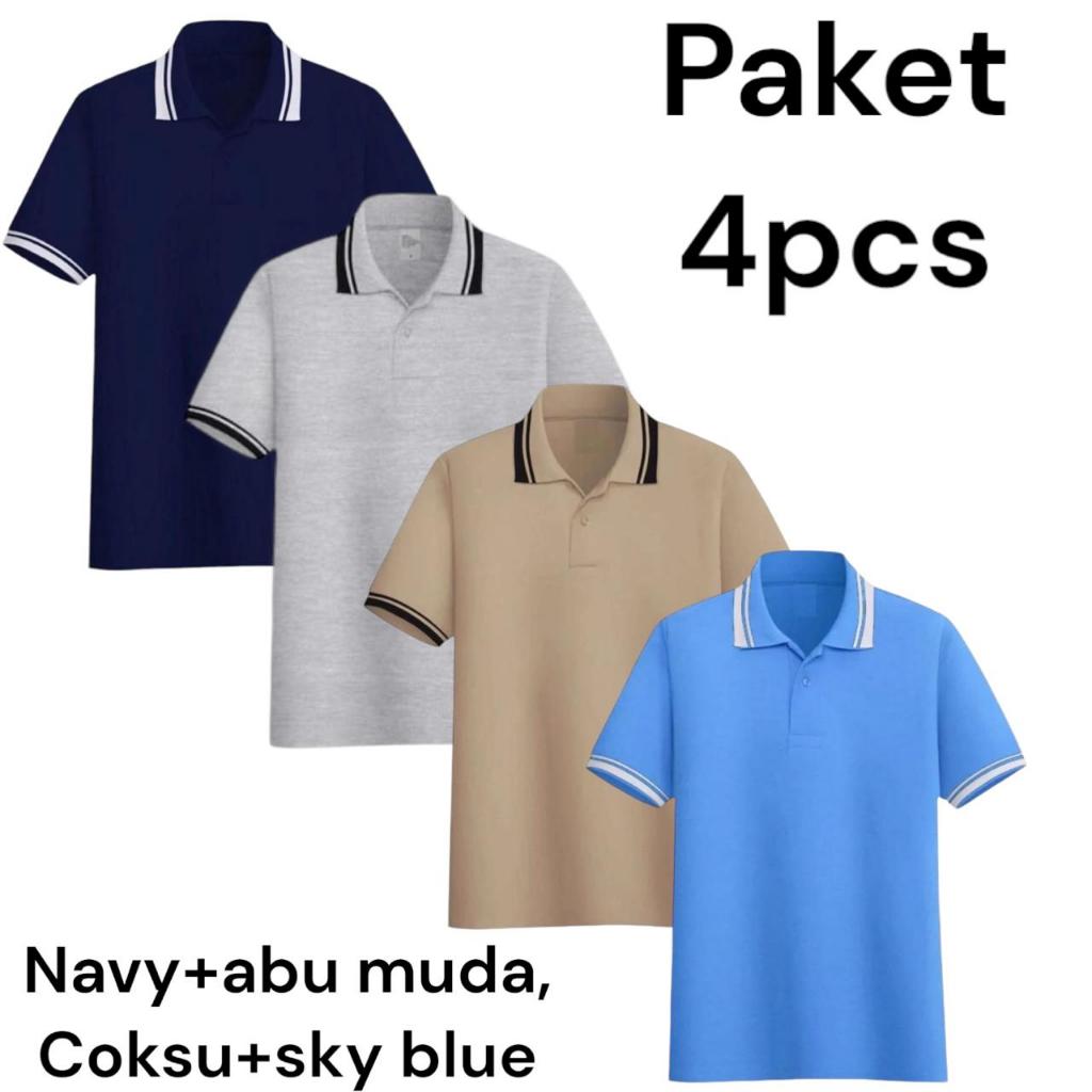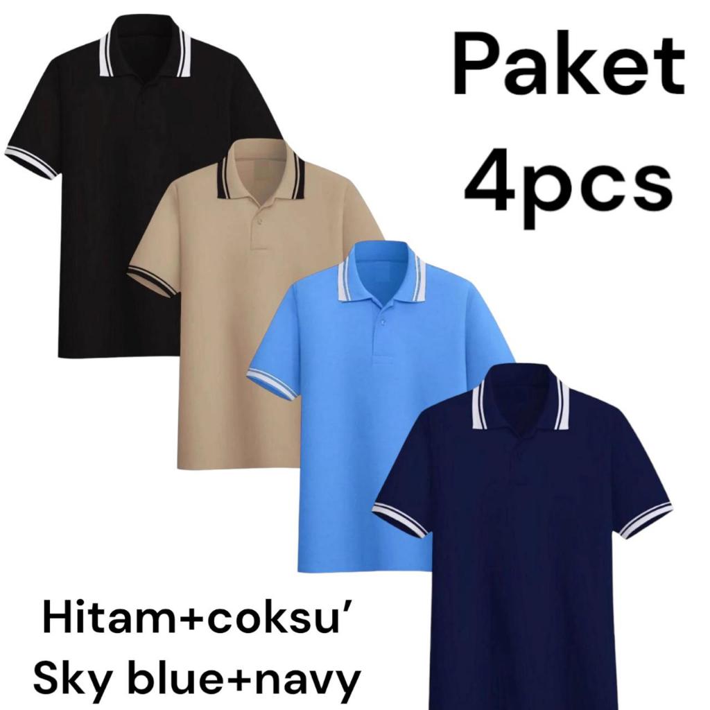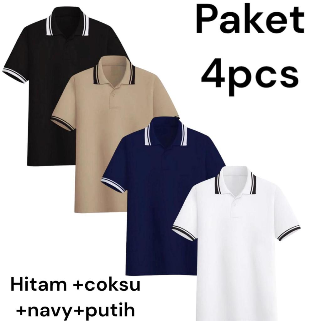 Paket 4Pcs Kaos Polo /Shirt Polos Hitam Putih Kerah Stripe | Cowok/ Wanita