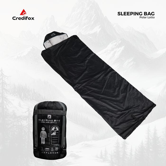 Credifox Sleeping Bag Ultralight Plus Bantal - Sleping Bag Polar Lotto - Selimut Camping Outdoor - Hitam Explorer