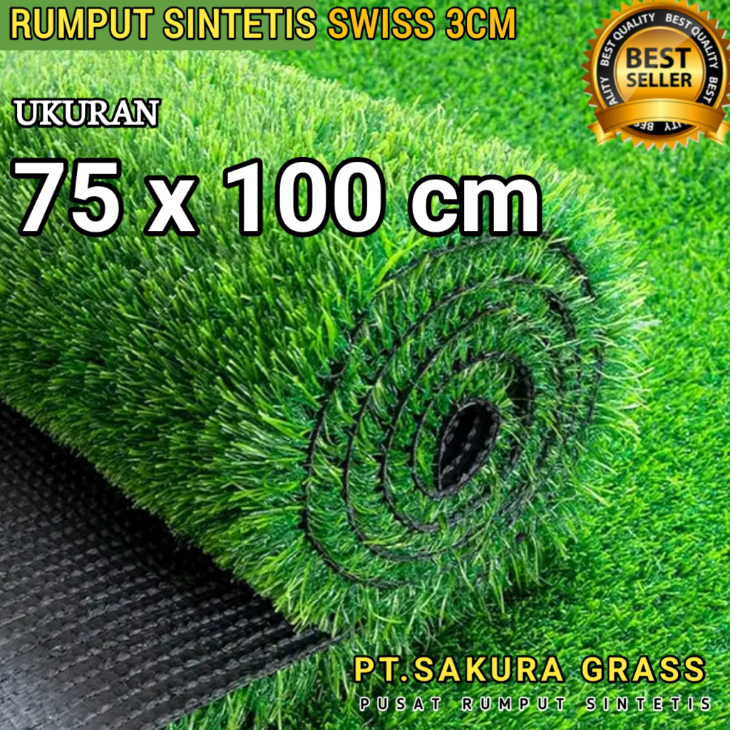 GROSIR RUMPUT SINTETIS SWISS TEBAL 3 CM PREMIUM UKURAN 75 X 100 CM BERPORI TERLARIS UNTUK TAMAN