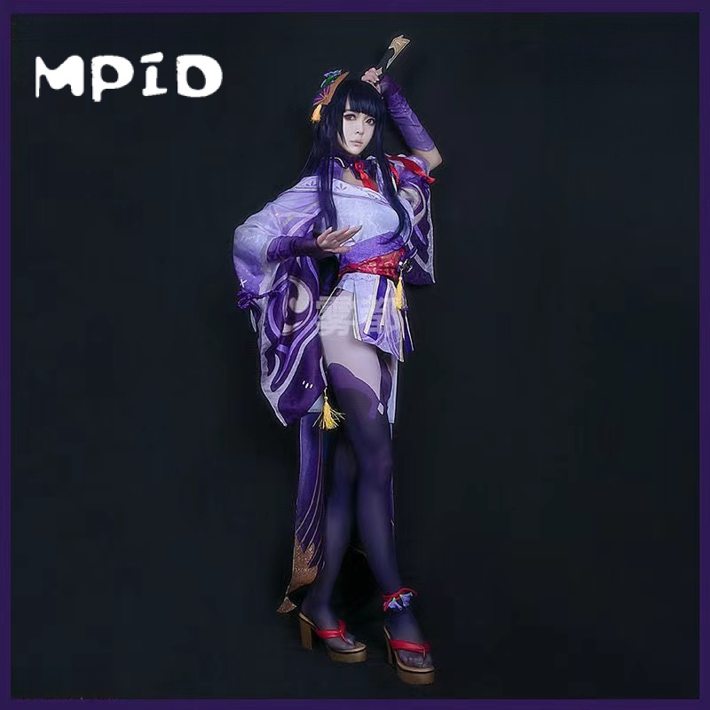 MPID Genshin Impact Cosplay Raiden Shogun Costume Wanita Kostum Beelzebul Wig Raiden Ei Kostum Shoes y Uniform Dress Ful