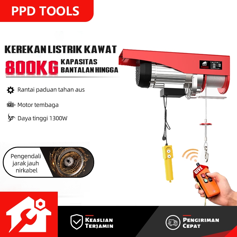 PPD TOOLS Kran Dekorasi Rumah Tangga 300kg, 500kg, 800kg+20m+Remote Control Tanpa Kabel Mengangkat Kabel Listrik